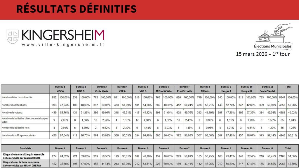 Résultats des élections municipales 2026 à Kingersheim